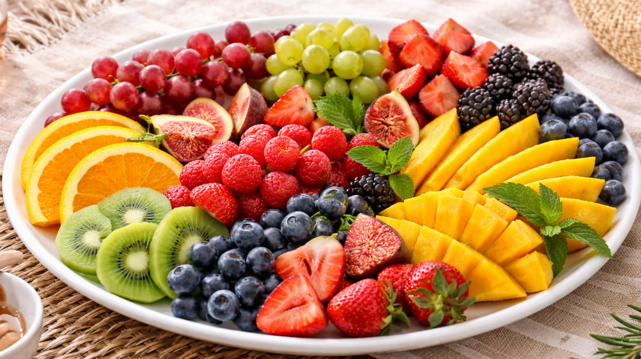 an arrangement of seasonal fruits