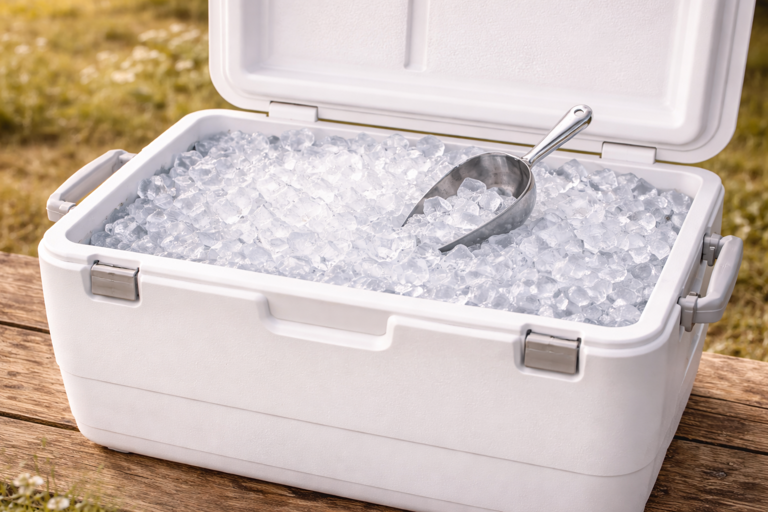 COOLER OF ICE AND SCOOP - $15